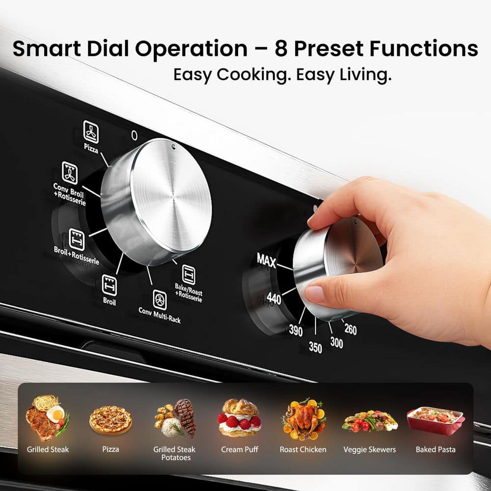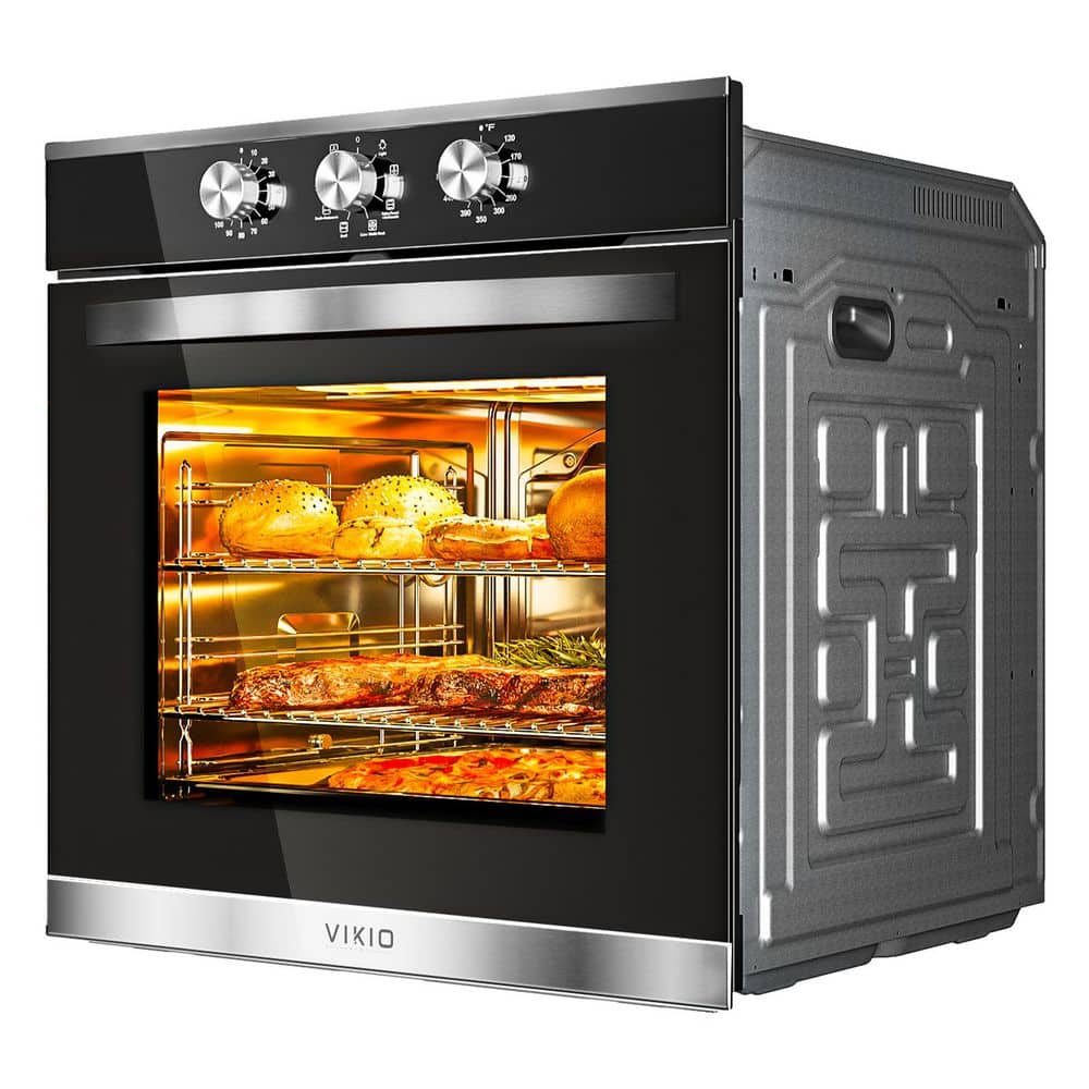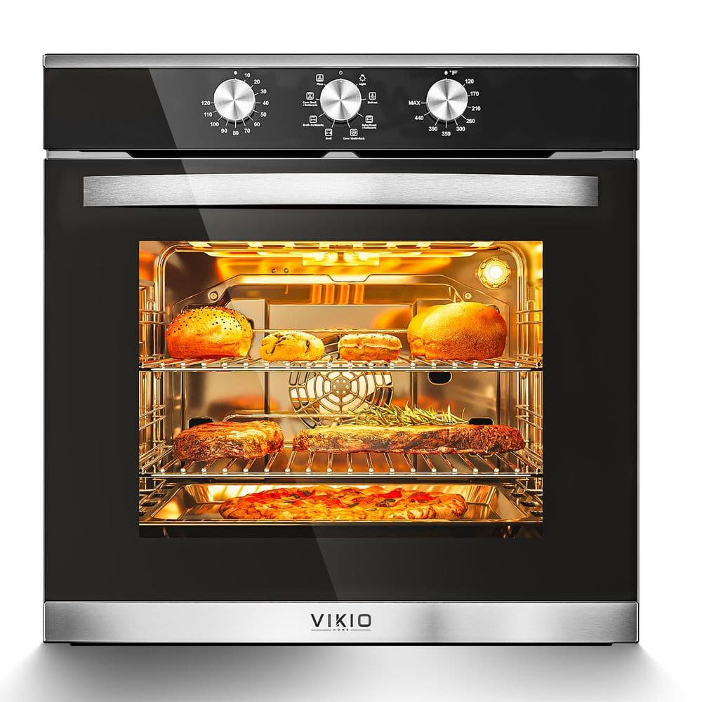 The VIKIO Kitchen electric single wall oven is stunningly bold with a timeless design for the perfect blend of form and function. This electric oven uses a 208-240V - 60 Hz for power supply with a 3220-Watt maximum output. It has 8 different cooking mode including 360° rotating grill, pizza mode, and more. It allows you to bake and broil with even and consistent cooking results. The big capacity accommodates a broil, multiple casserole dishes, or two full racks of cookies. VIKIO kitchen appliances provide up-to-date technology and exceptional quality to simplify the way you live. With a timeless appearance, this family of appliances is ideal for your family.