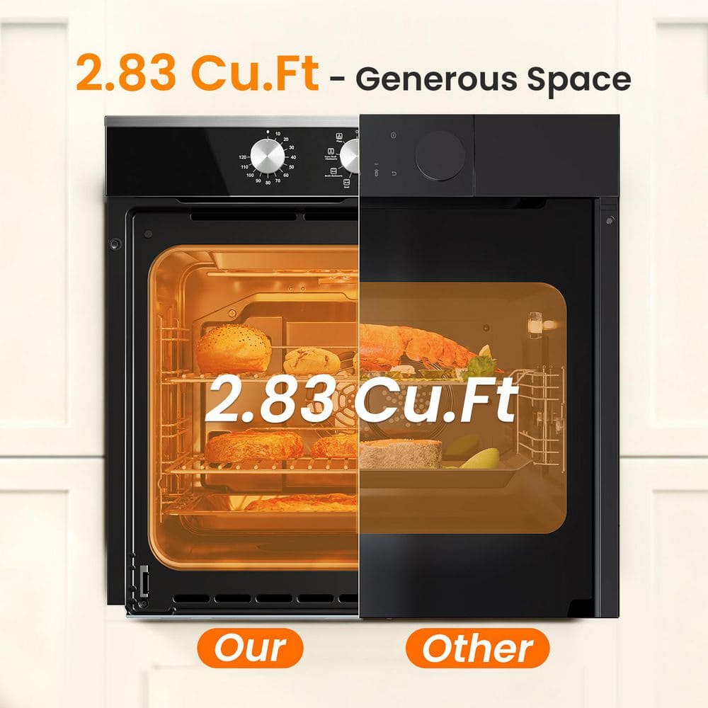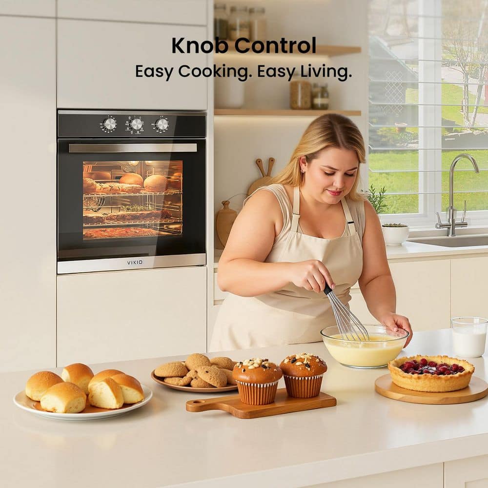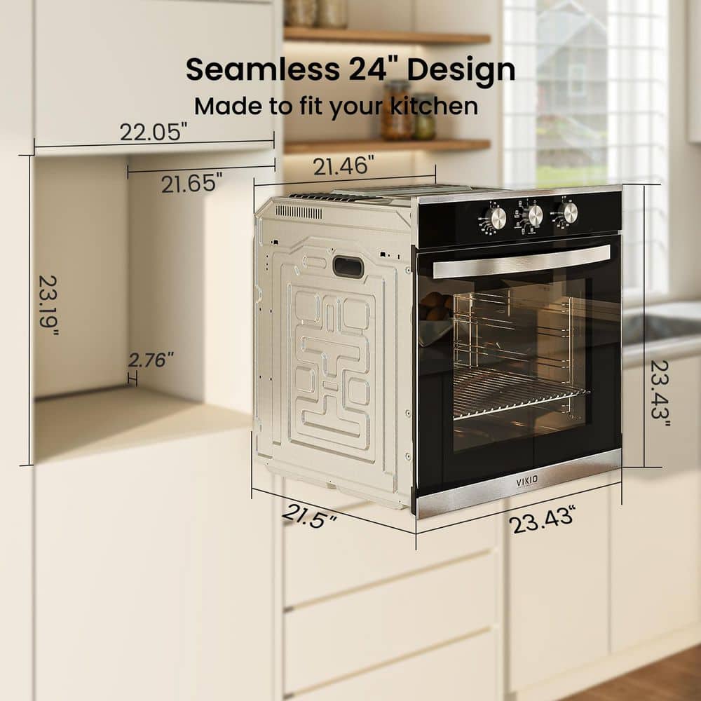 VIKIO 24 in. 2.83 cu. ft. single Electric Wall Oven with Convection and Manual Clean in Stainless Steel, Tempered Glass Door