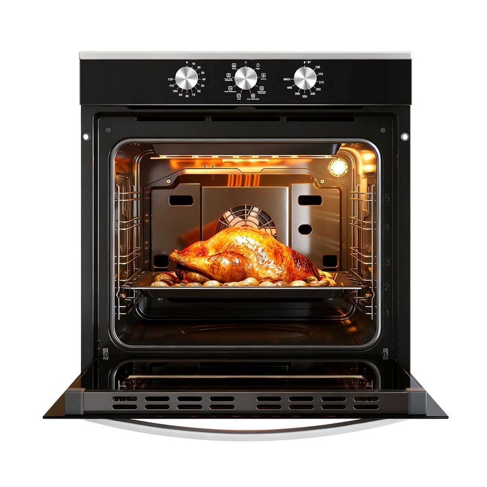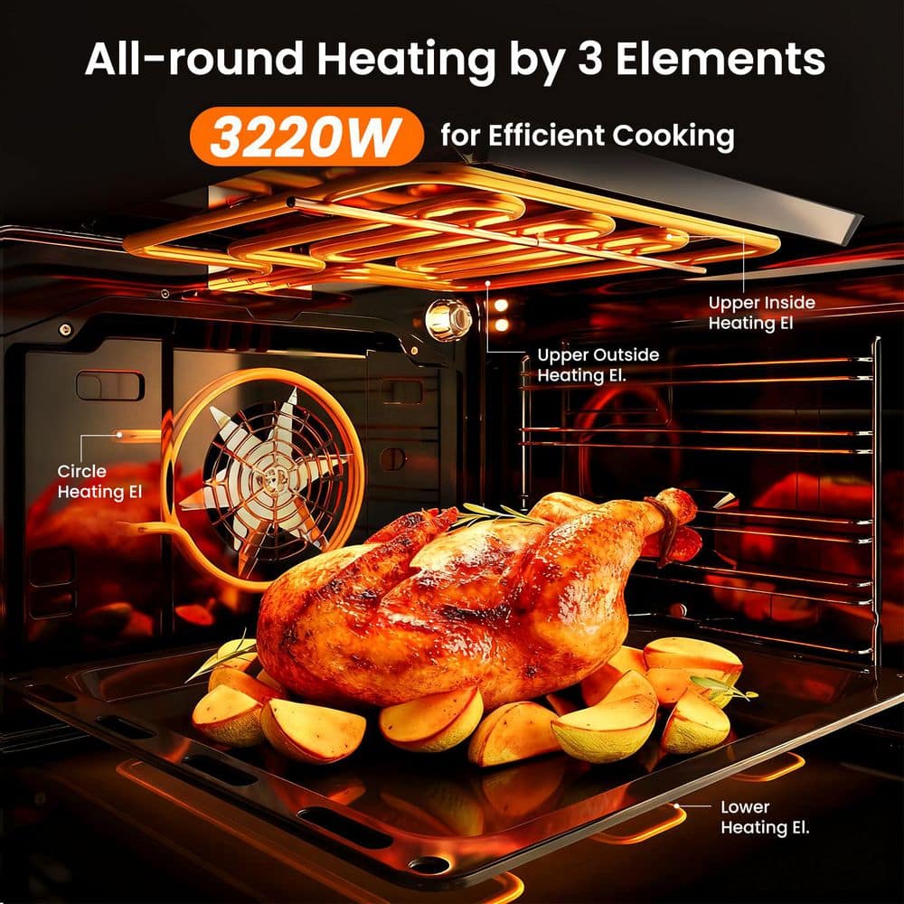 The VIKIO Kitchen electric single wall oven is stunningly bold with a timeless design for the perfect blend of form and function. This electric oven uses a 208-240 Volt - 60 Hz for power supply with a 3220-Watt maximum output. It has 8 different cooking mode including 360° rotating grill, pizza mode, and more. It allows you to bake and broil with even and consistent cooking results. The big capacity accommodates a broil, multiple casserole dishes, or two full racks of cookies. VIKIO kitchen appliances provide up-to-date technology and exceptional quality to simplify the way you live. With a timeless appearance, this family of appliances is ideal for your family.