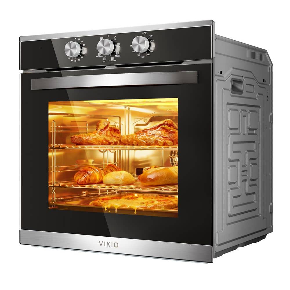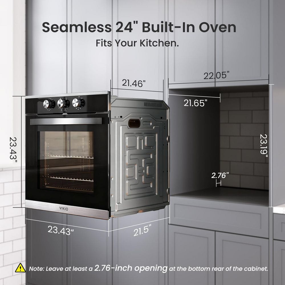VIKIO 24 in. 2.83 cu. ft. single Electric Wall Oven with Convection and Manual Clean in Stainless Steel, Tempered Glass Door