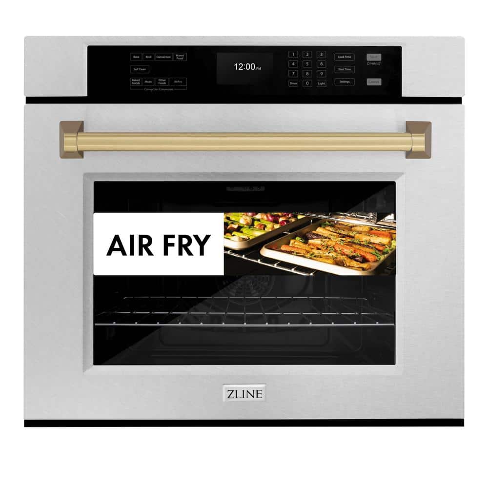 Luxury isn't meant to be left desired-it's meant to be attainable. The ZLINE 30 in. Autograph Edition Professional True Convection Single Wall Oven with Air Fry and Self Clean in Satin Stainless Steel with Champagne Bronze Handle (WASSZ-30-CB) provides a professional culinary experience by pairing reliable, everyday performance with contemporary convection cooking capabilities and cutting-edge air frying technology. Achieve ZLINE Attainable Luxury excellence with innovative features designed to enhance your kitchen's capability.