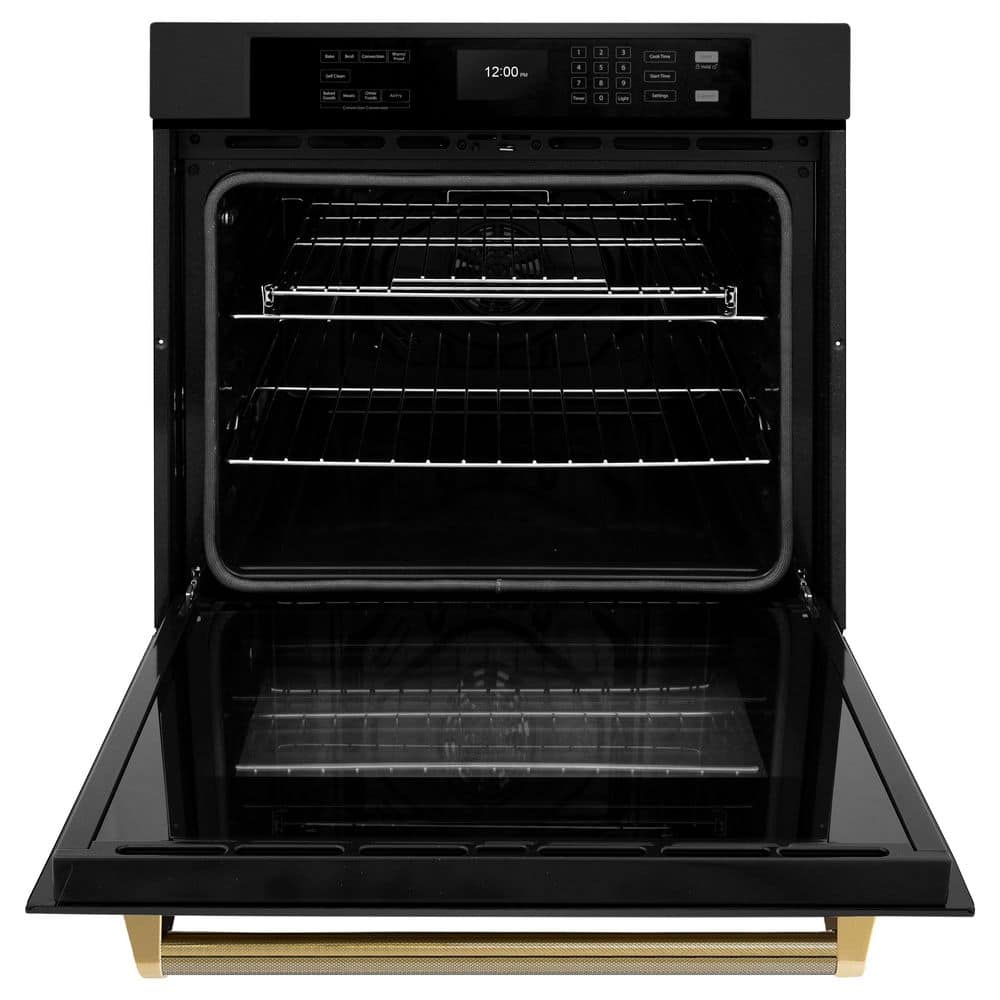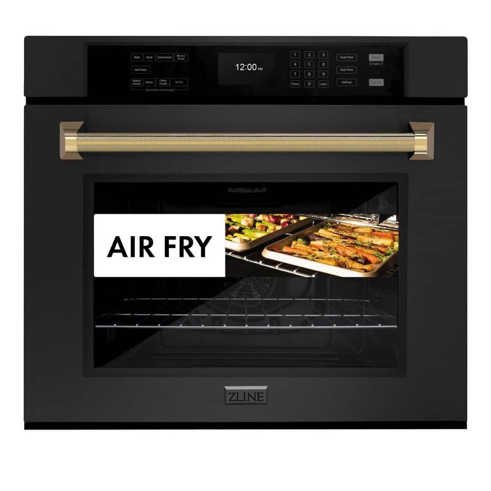 Luxury isn’t meant to be left desired it’s meant to be attainable. The ZLINE Autograph Edition 30 in. Professional True Convection Single Wall Oven with Air Fry and Self Clean in Black Stainless Steel with Polished Gold Helix Handle (WASBZ-30-KG) provides a professional culinary experience by pairing reliable, everyday performance with contemporary convection cooking capabilities and cutting-edge air frying technology. Achieve ZLINE Attainable Luxury excellence with innovative features designed to enhance your kitchen’s capability.