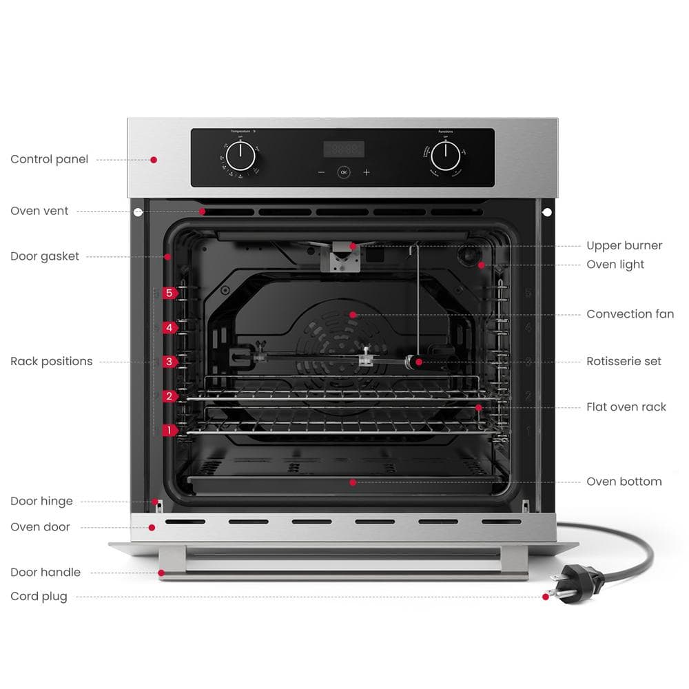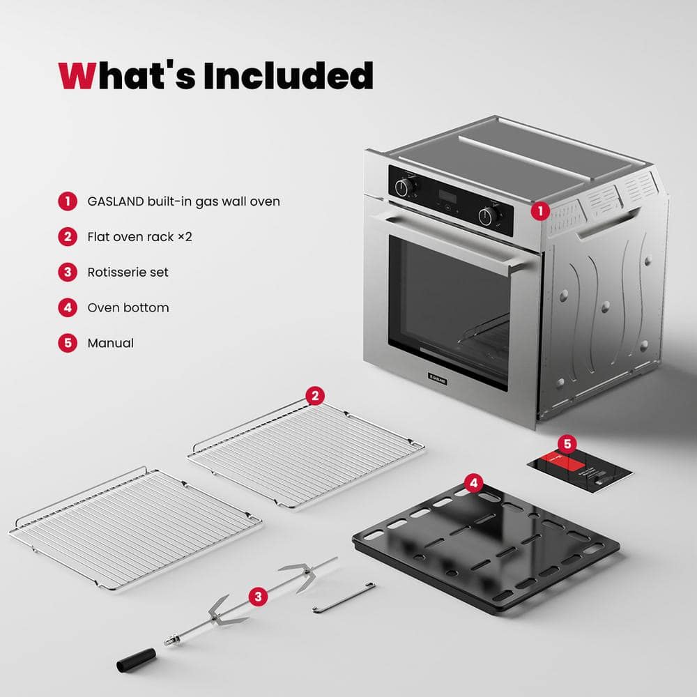GASLAND 24 in. Built-In Single Natural Gas Wall Oven with Rotisserie and Convection System, Digital Display in Stainless Steel