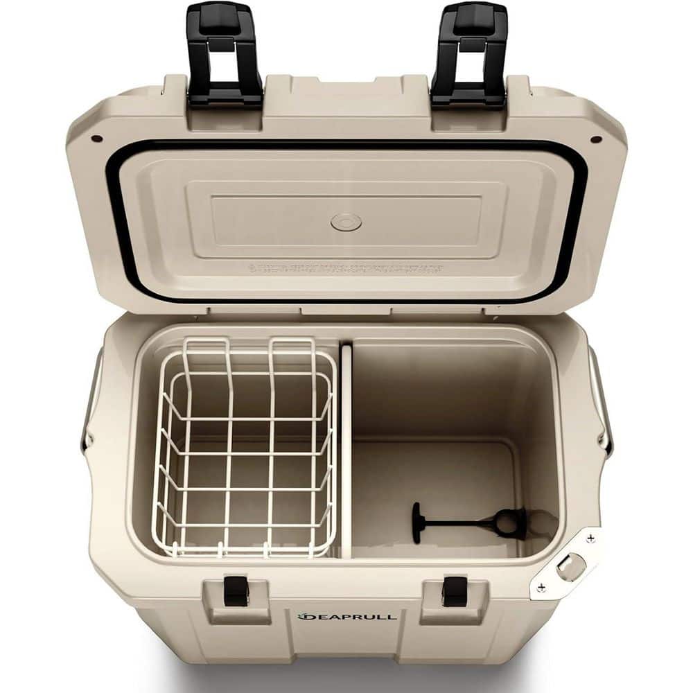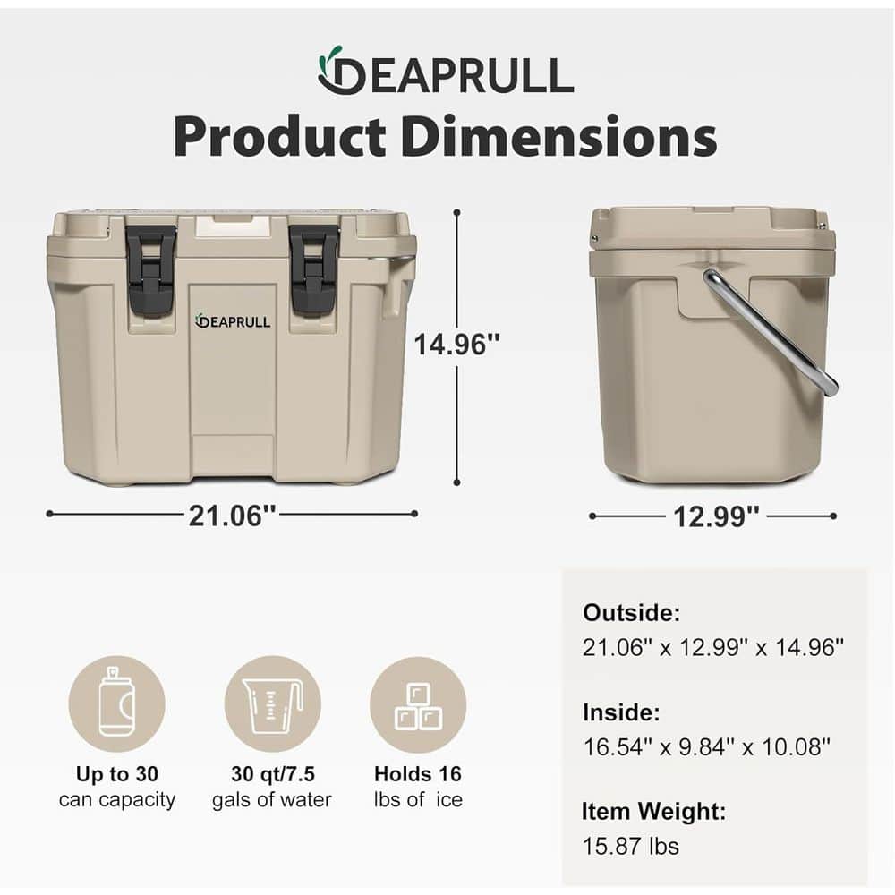 Ready for your next adventure? The 30 Quart Hard Cooler is your rugged, reliable companion built for the outdoors. With up to 3 inches of premium insulation and refrigerator-grade sealing, it keeps ice solid for up to 96 hours-perfect for camping, beach days, fishing trips, or weekend getaways. Its compact size fits easily in your car, yet it's tough enough to support up to 500 lbs, doubling as a seat or table. The double-latch design locks in cold air, while the stainless steel lid-lock handle ensures secure transport with a comfortable grip. Thoughtfully designed with built-in cup holders, a bottle opener, a fish ruler, and a leakproof drain plug, this cooler is made to handle every detail of outdoor life. Non-skid rubber feet keep it stable on any surface, and included dry baskets and 30 ice packs help you stay organized and chilled. Built to last, weather-resistant, and backed by a 12-month warranty with lifetime support-this is the cooler that's made to go wherever you do.
