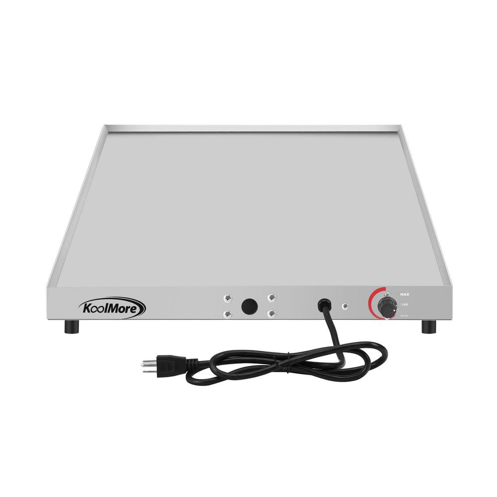 Enhance your commercial kitchen's efficiency with the KoolMore 36 In. Commercial Warming Shelf.This versatile warming shelf, ensures your dishes stay at the perfect temperature for serving. With a sleek stainless-steel finish and robust 304 stainless-steel exterior, it's both durable and aesthetically pleasing, seamlessly blending into any kitchen decor.Engineered for safety and sanitation, the KoolMore warming shelf is UL listed and NSF certified, making it a reliable choice for any professional kitchen. It features an infinite mechanical control system, allowing precise temperature adjustments within the 80-212°F range. The sturdy construction supports up to 55 lbs., making it ideal for a variety of dishes and serving needs.The shelf is designed with practicality in mind and includes a 4.59 ft power cord and a NEMA 5-15P plug type, ensuring easy installation. The adjustable rubber feet provide stability on any surface, while the marine edge design prevents spills and ensures easy cleanup. Whether running a busy restaurant or catering service, the KoolMore warming shelf is your go-to solution for keeping food warm and ready to serve.