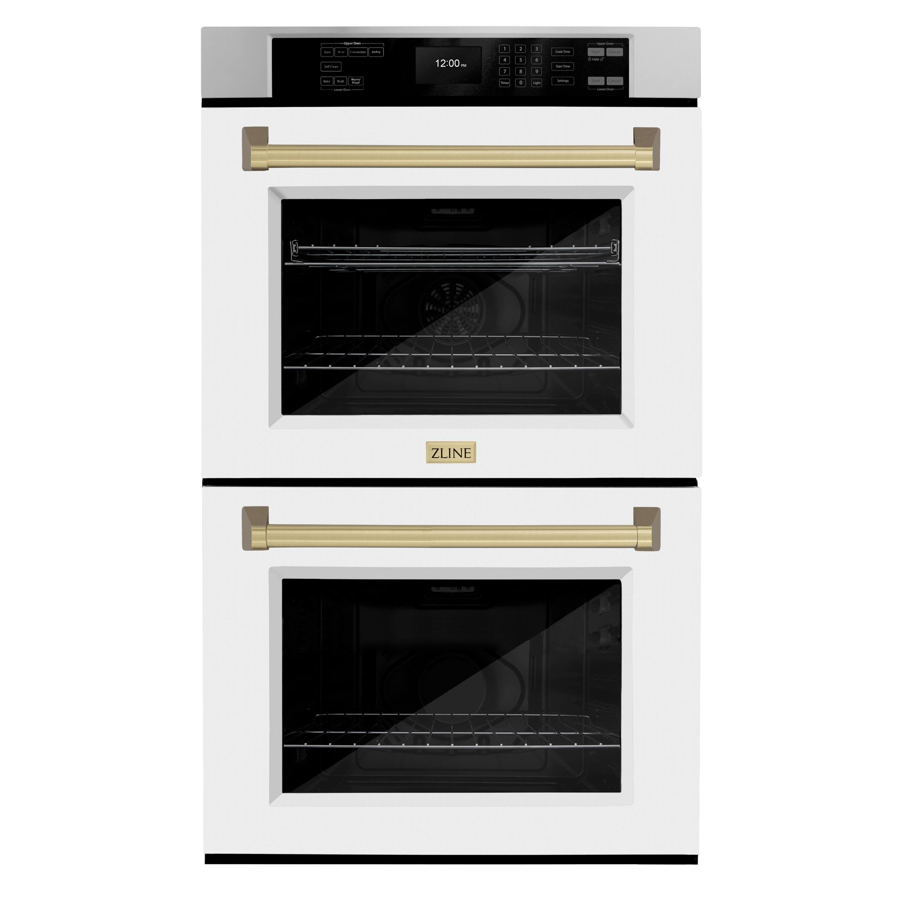 ZLINE - 30 in. Autograph Double Wall Oven w/ Air Fry and White Doors w/ Bronze Handles - Stainless Steel