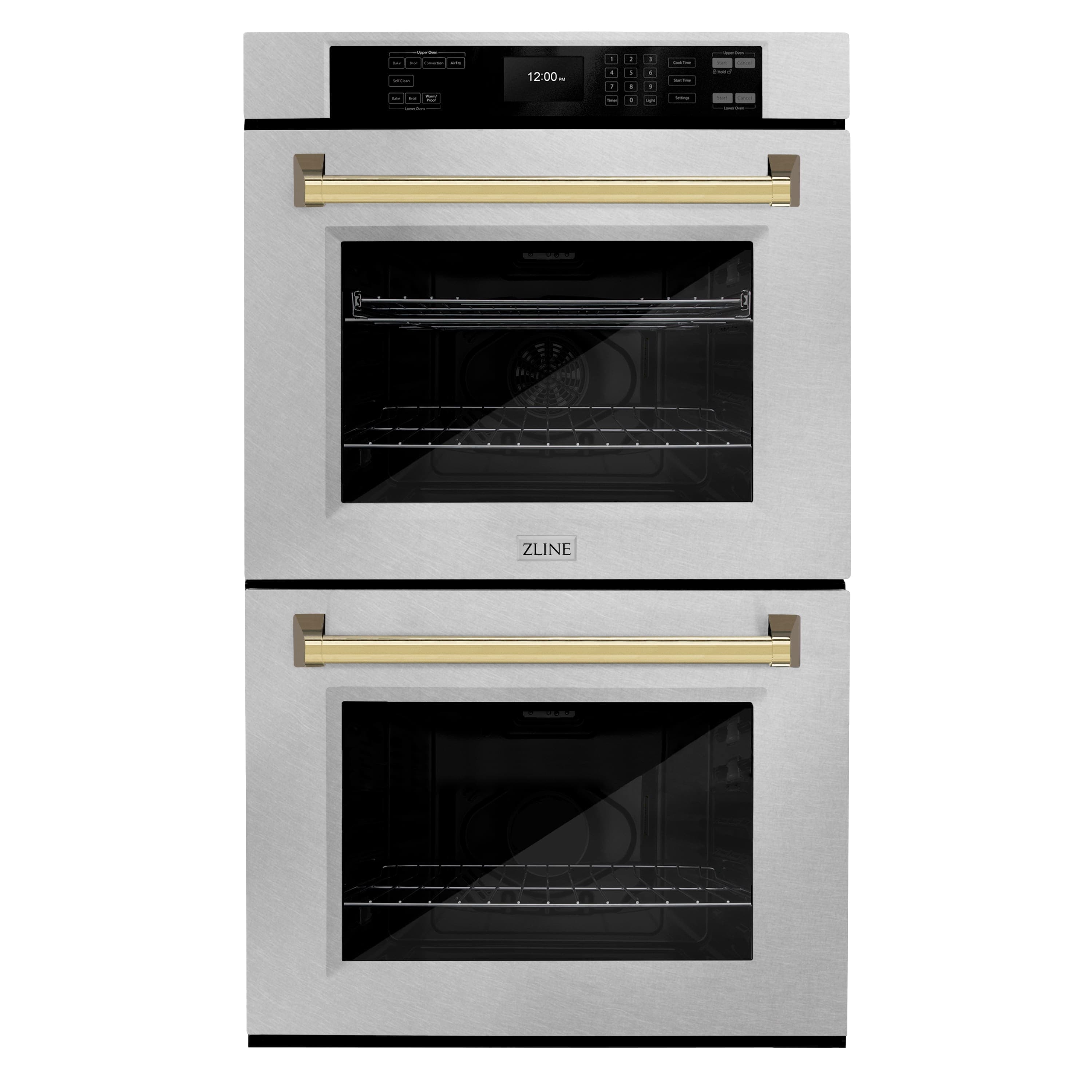 ZLINE - 30 in. Autograph Double Wall Oven w/ Air Fry in Satin Steel w/ Gold Handles - Satin Stainless Steel