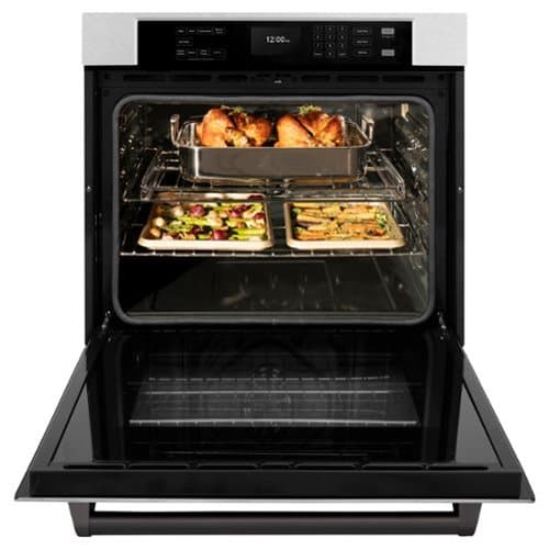 Luxury isn’t meant to be left desired — it’s meant to be attainable. The ZLINE 30 in. Autograph Edition Professional True Convection Single Wall Oven with Air Fry and Self Clean in Satin Stainless Steel with Matte Black Handle (WASSZ-30-MB) provides a professional culinary experience by pairing reliable, everyday performance with contemporary convection cooking capabilities and cutting-edge air frying technology. Achieve ZLINE Attainable Luxury excellence with innovative features designed to enhance your kitchen’s capability.