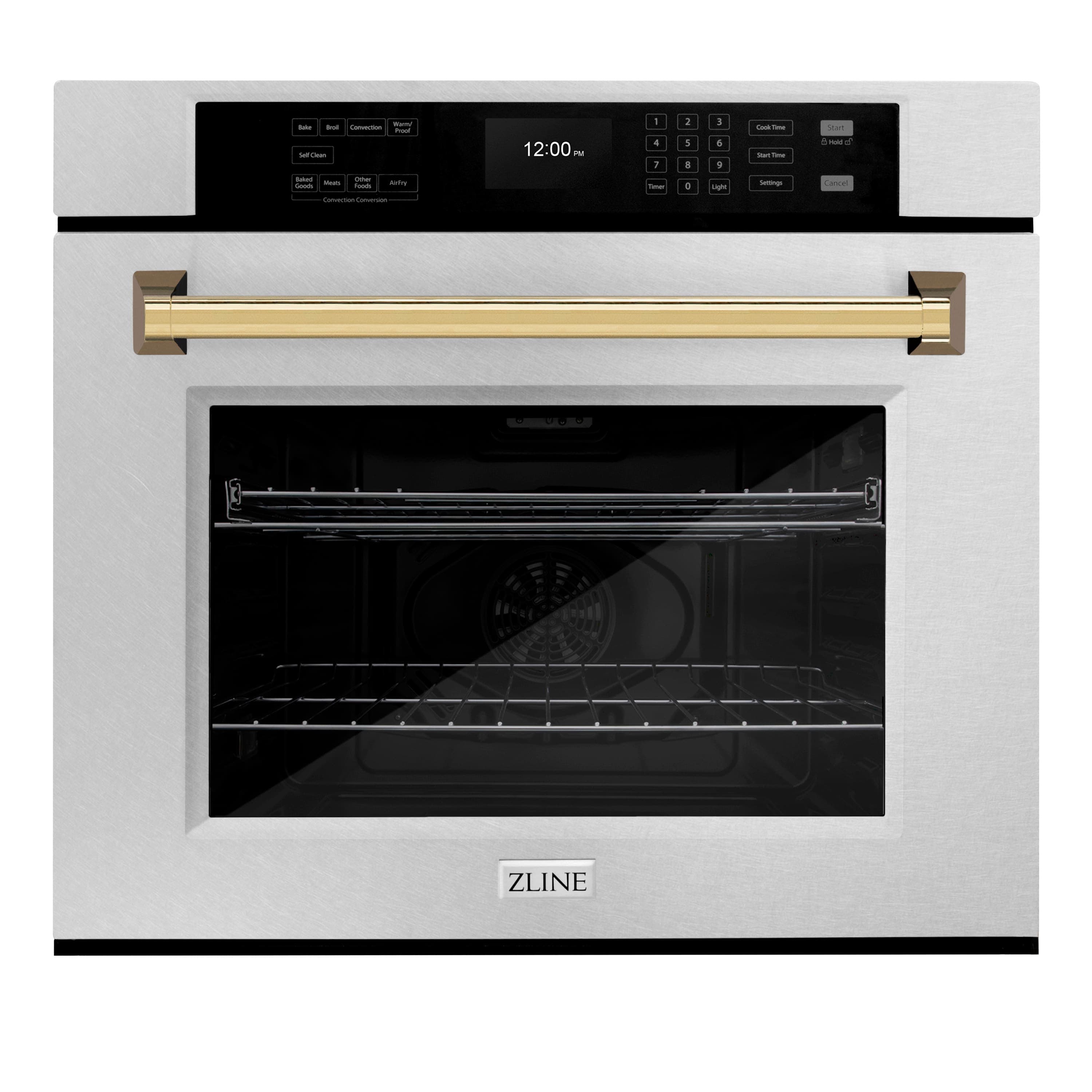Luxury isn’t meant to be left desired — it’s meant to be attainable. The ZLINE 30 in. Autograph Edition Professional True Convection Single Wall Oven with Air Fry and Self Clean in Satin Stainless Steel with Polished Gold Handle (WASSZ-30-G) provides a professional culinary experience by pairing reliable, everyday performance with contemporary convection cooking capabilities and cutting-edge air frying technology. Achieve ZLINE Attainable Luxury excellence with innovative features designed to enhance your kitchen’s capability.
