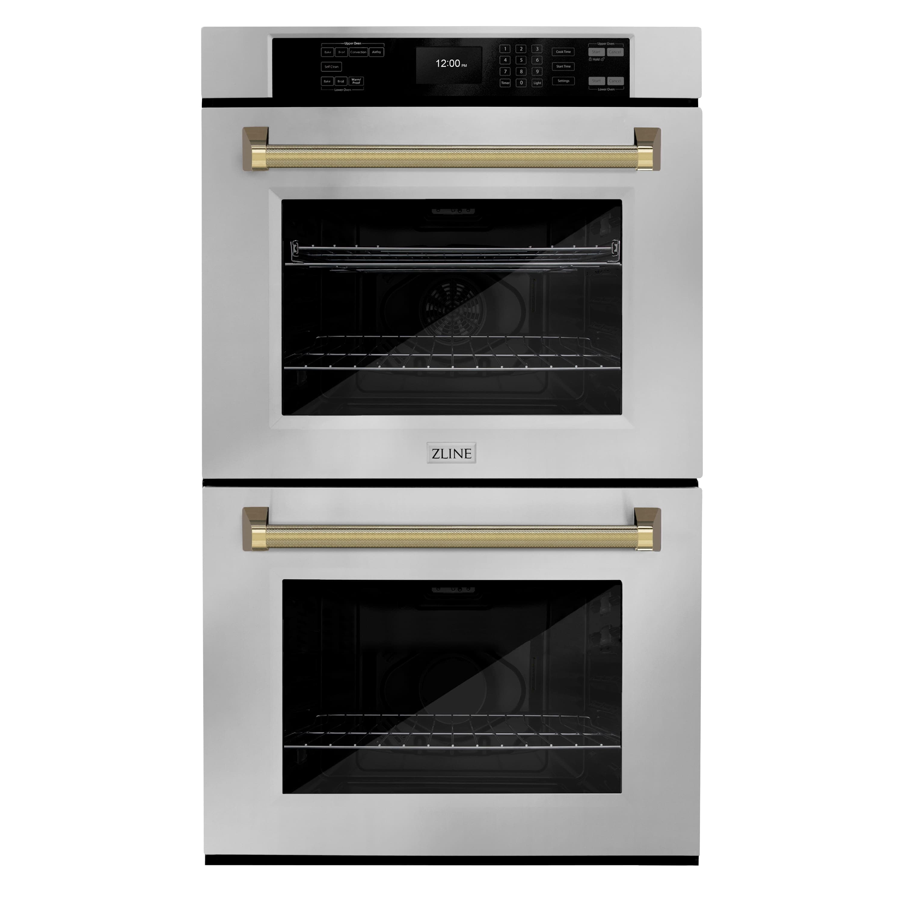 ZLINE - Autograph 30 in. True Convection Double Wall Oven & Gold Helix Handles (WADZ-30-KG) - Stainless Steel