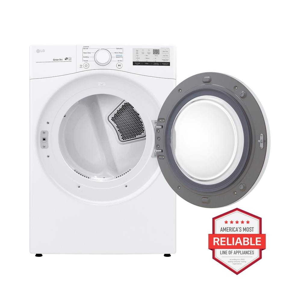 LG 7.4 Cu. Ft. Vented Stackable Gas Dryer in White with Sensor Dry