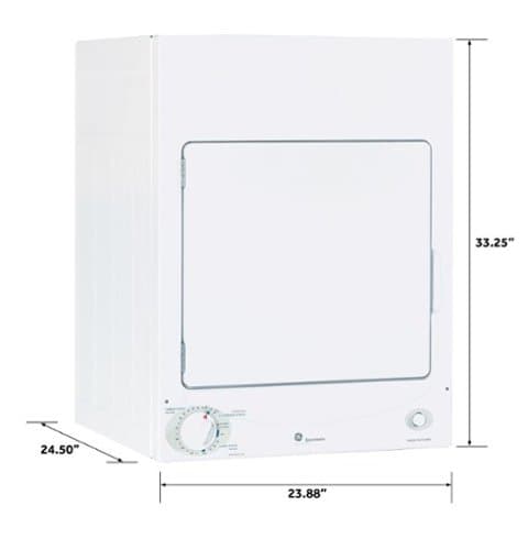 Save space in your laundry room and still get your clothes dry with this 120-Volt 3.6 cu. ft. electric dryer that stacks on top of a washer or counter. Three dry cycles and 3 heat selections cater to different fabrics.