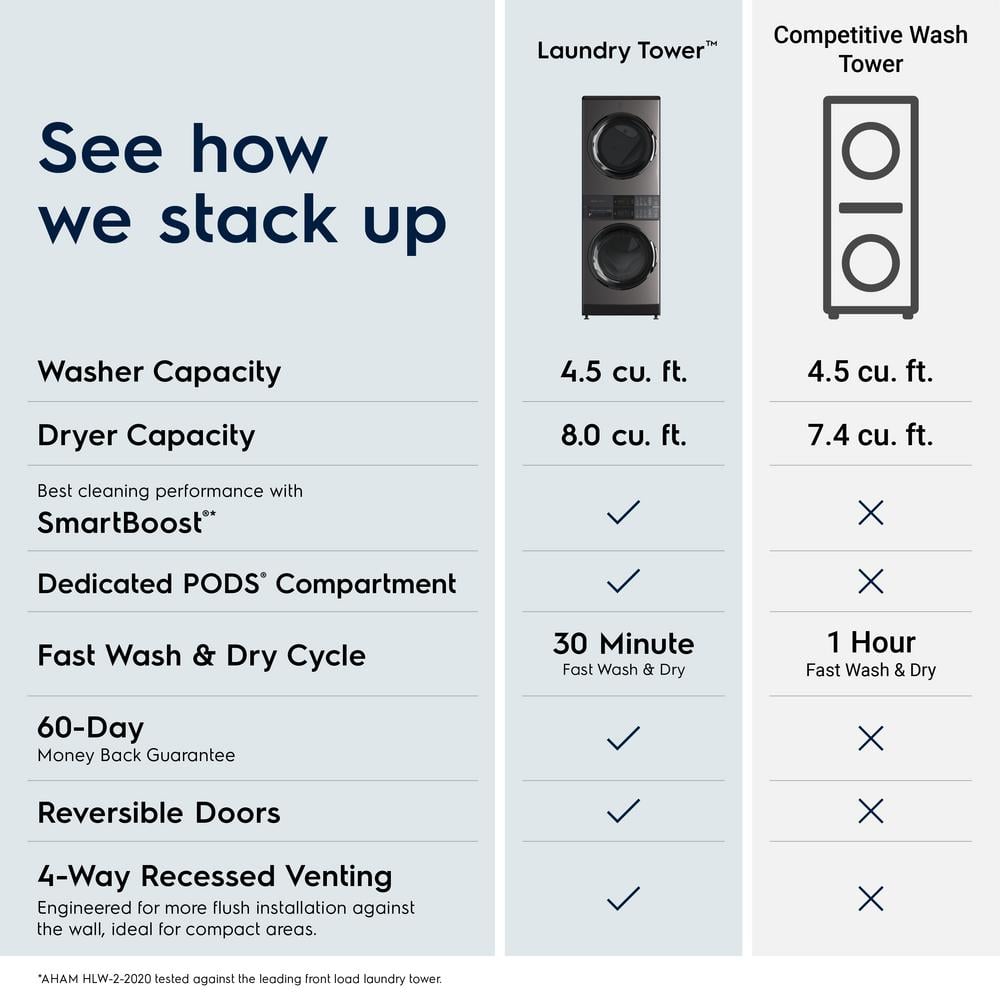 Electrolux 4.5 cu. ft. Stacked Washer and 8.0 cu. ft. Electric Dryer Laundry Tower in Titanium, SmartBoost Premixing, Energy Star