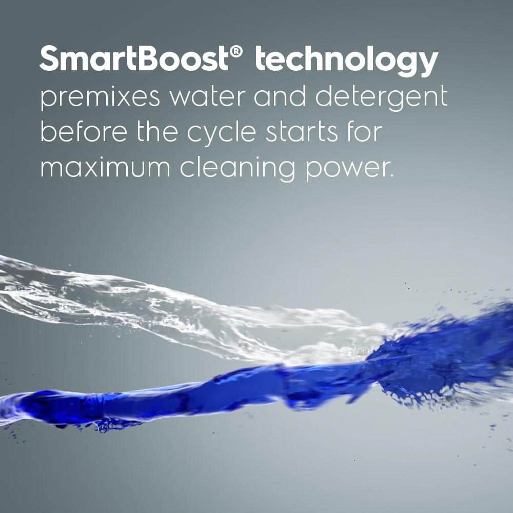 Full-size and fully integrated front load Electrolux Laundry Tower features a stacked design that takes up half the floor space, freeing up the laundry room for extra storage, all with an easy to reach control panel. The washer provides the most effective stain removal with SmartBoost premixing technology*. The dryer with LuxCare Dry uses a moisture sensor to prevent over or under-drying.