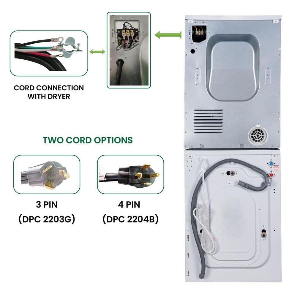 Equator 1.9 cu.ft. 110V Washer & 4 cu.ft. 220V Vented Sensor Dryer with Reversible door stackable Washer Dryer Combo in White