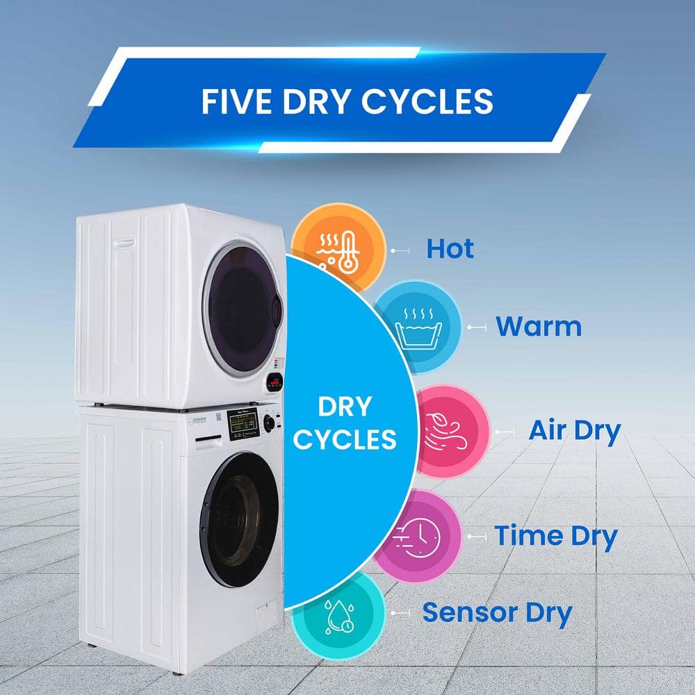 Equator 110V 1.62 cu.ft. Washer w/Pet Cycle & 120V 3.5 cu.ft. Vented Digital Sensor Dryer stackable Washer Dryer Combo in White
