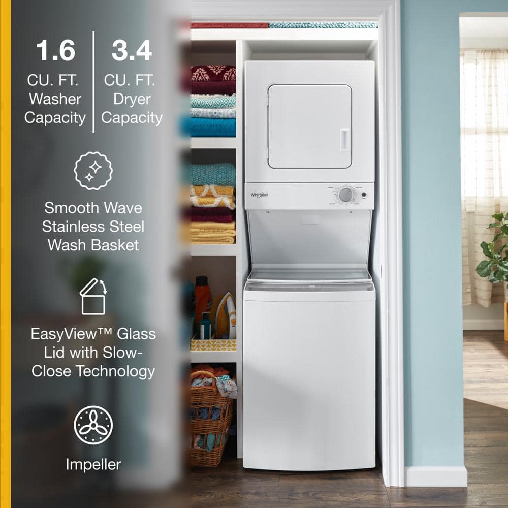 Wash and dry all the essentials with a stackable washer and dryer combination that accommodates small spaces. The see-through washer lid lets you easily check on your load while it's washing and the dryer automatically senses when clothes are dry to prevent over drying. Also, help prevent wrinkles from setting in with the Wrinkle Shield option.