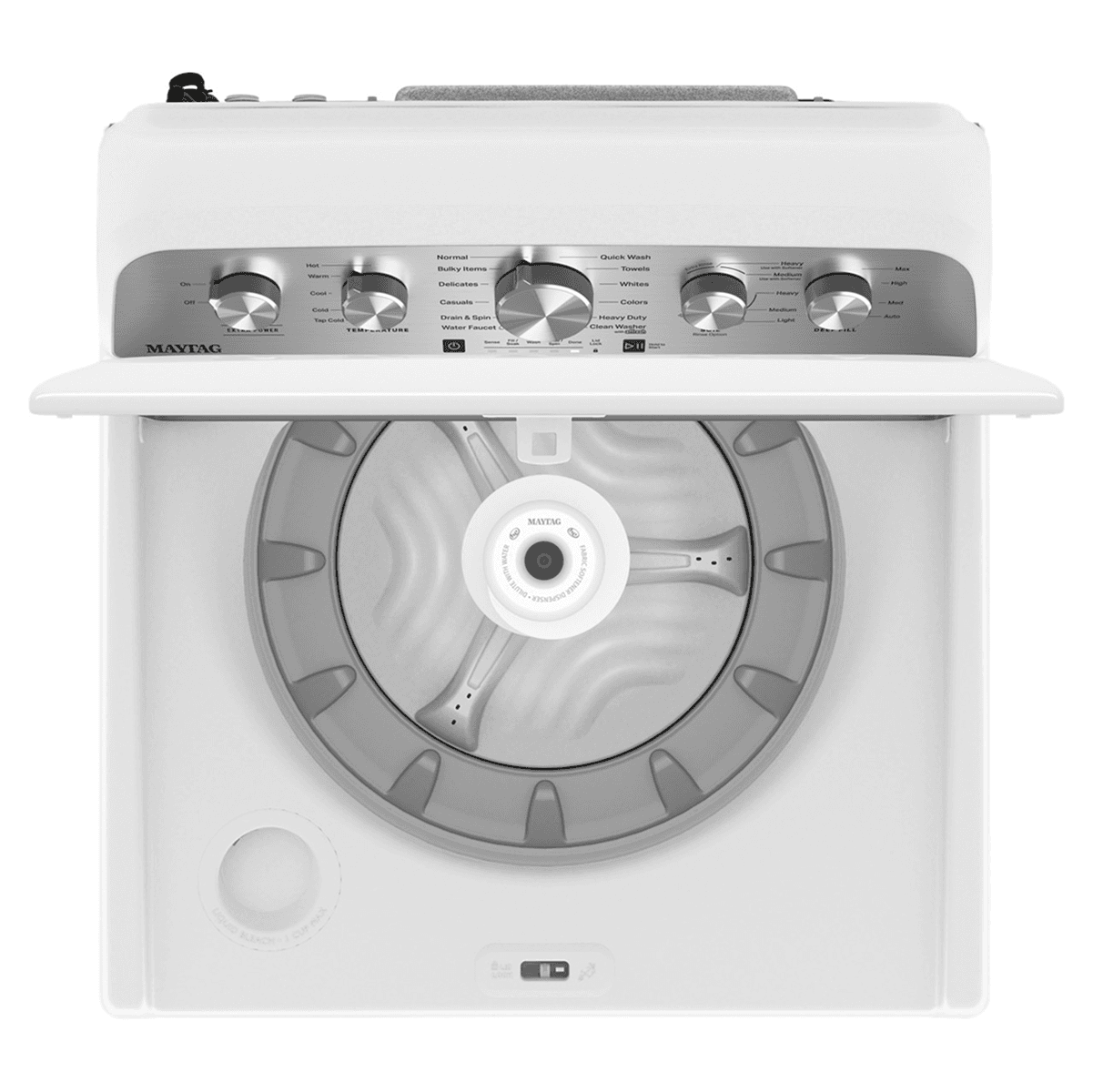 The Maytag® 4.5 cu. ft. capacity washer with Extra Power delivers boosted stain fighting on any wash cycle while the Power™ agitator uses a 360-degree wash action to break up messes. This Deep Fill washer delivers more water when you want it while the built-in water faucet rinses, spot treats or soaks clothes right in this heavy duty washing machine.
