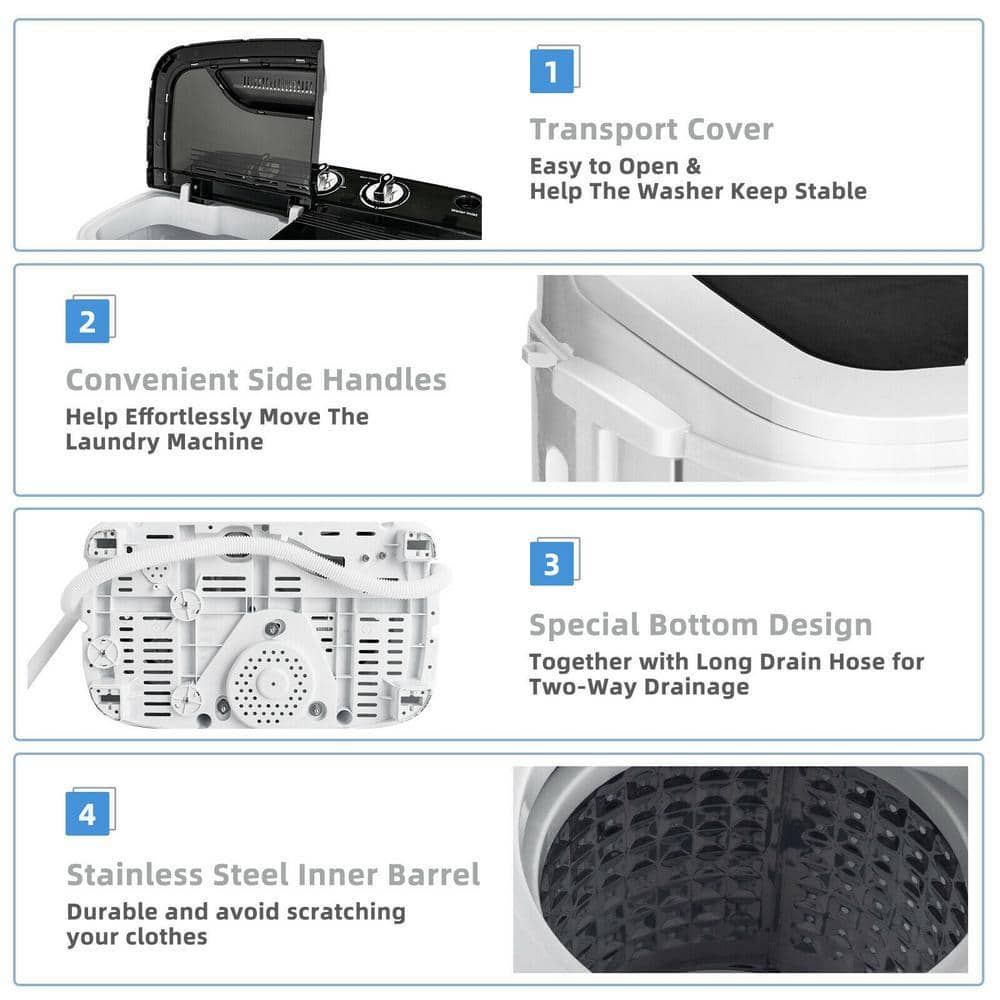 Experience ultimate convenience with our Ultra Compact and Portable Twin Tub Washing Machine. Perfect for small spaces such as dorms, apartments, condos, motor homes, RVs, and camping trips, this washing machine is designed to make laundry easy and efficient. Its user-friendly features, energy-efficient operation, and compact design make it an ideal solution for your laundry needs.