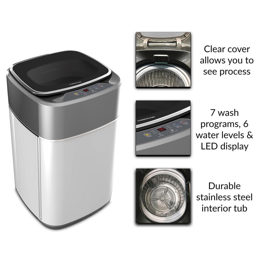 Now you can have the convenience of being able to move your clothes washer where you need it, with the Farberware Urban Living 1.0 cu. ft. Portable Clothes Washer. With washing capacity up to 7 lbs. and 7 wash programs you can have all the wash-power you need - exactly where you need it. This washer easily hooks up right to your sink.
