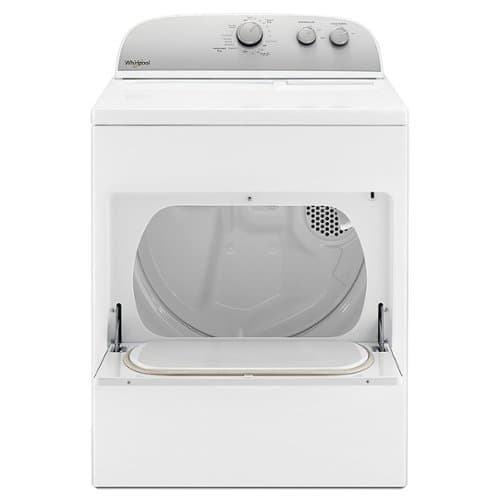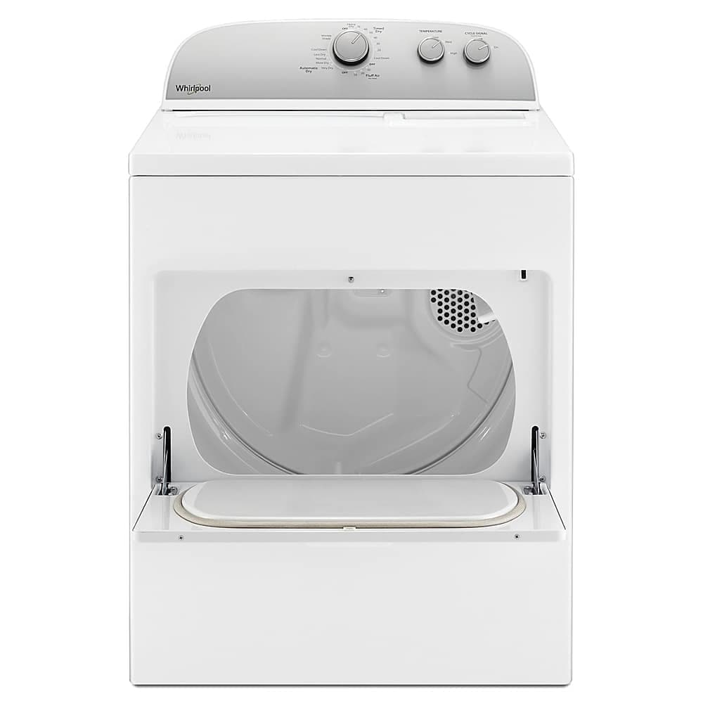 Dry clothes efficiently with this 7.0 cu. ft. Whirlpool electric dryer. Its end-of-cycle periodic tumbling option prevents creases and wrinkles, and its three temperature selections and 14 settings handle a variety of loads and fabrics. This 29-inch Whirlpool electric dryer's wide-opening drop-down door keeps freshly laundered items off the floor and simplifies unloading.